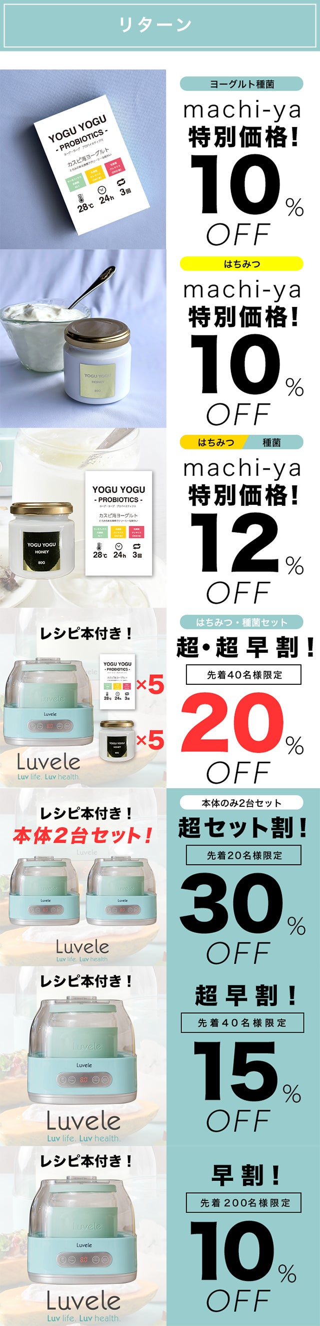 Luvele日本発売を記念して、乳酸菌たっぷりのヨーグルト『種菌』とヨーグルトに合う『はちみつ』を開発しました!ブランド名は『YOGU YOGU(ヨーグ・ヨーグ)』。新しい生活習慣をサポートします。