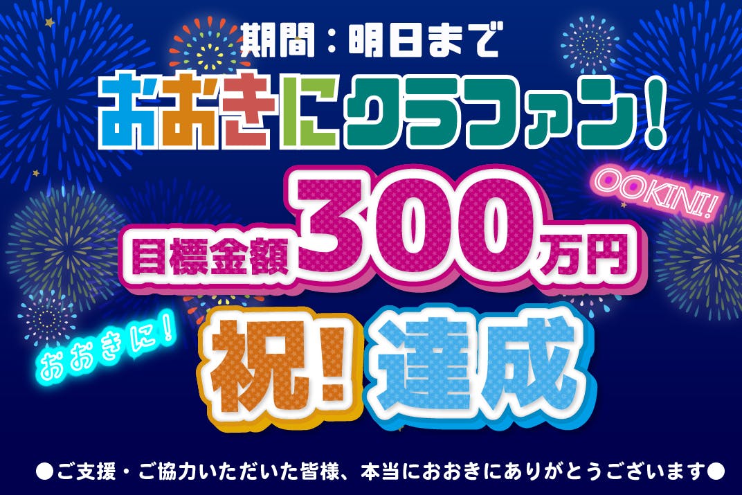 祝・おおきにクラファン目標金額300万円達成!