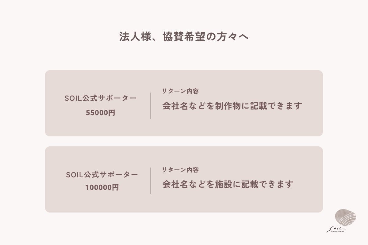 2023/08/22 13:35ご支援してくださった皆様、本当にありがとうございます!!!現場も急ピッチで追い込みをかけておりますので、今後もいろいろと活動報告していきます! もっと見るSOIL事業概要の動画をつくりました!