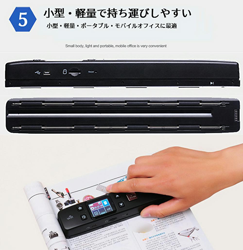 ・スタンド式スキャナーなどのような面倒なセッティングやドライバは一切必要ありません。充電式なので、電源がないところでもスキャンをすることができます。