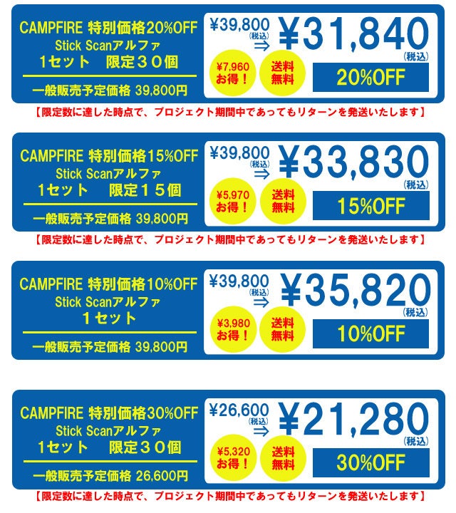 以前開催していたStickScanプロジェクトでは,、155人もの多くのサポーターの方々が2,760,208円のご支援をいただきました。