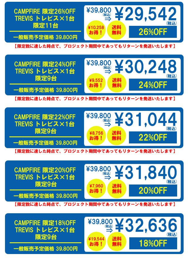 ※想定を上回る皆様からご支援を頂き、量産体制を更に充実させることができた場合、一般販売価格が予定価格を下回る可能性がございます。