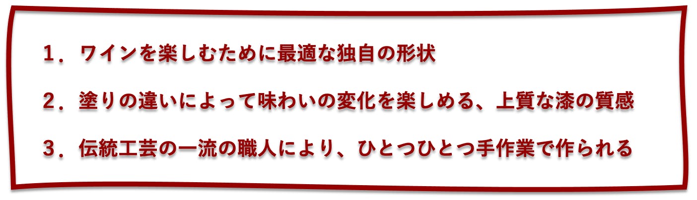 その良さを最大限に感じつつ、ワインを美味しく味わって頂けるよう、漆器の形状や質感にはとことんこだわって開発しました。