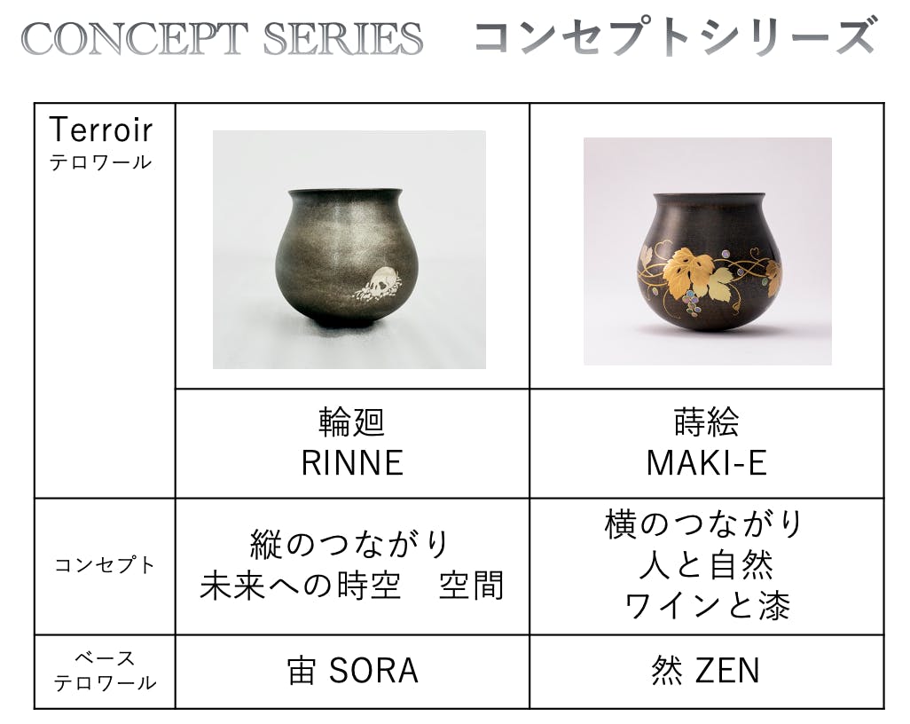 ワインと漆との共通点「自然と人との繋がり」から生まれたブランドが「アール・ド・テロワール」。国境も世代も越えて共感し続けることができる、サステナブルなワインライフを提案しています。