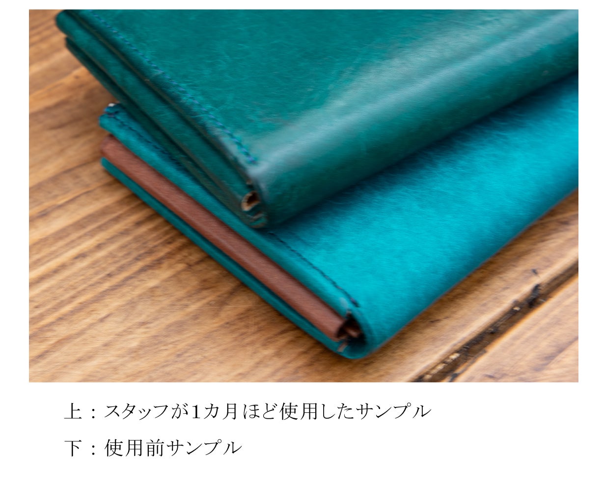 革本来の質感を優先するため色止め加工は施されていないので、変色・退色・色移り・オイル移り等の可能性があります。予めご了承ください。