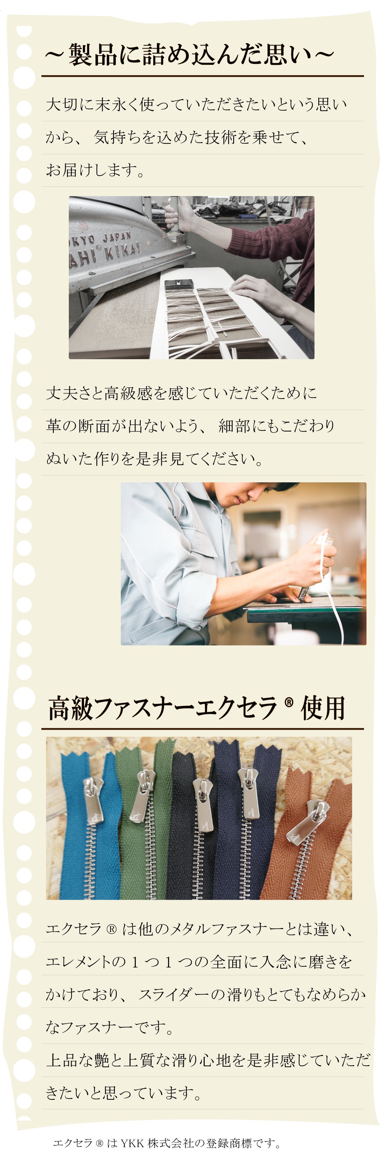 ※ 天然皮革の素材の特徴として、染色の際に生じる色の誤差(濃淡など)や血筋・シワ・傷跡・色ムラなど個別に差異がございます。これら全てが天然の証であり、革の魅力になります。ご了承いただけますようよろしくお願いいたします。