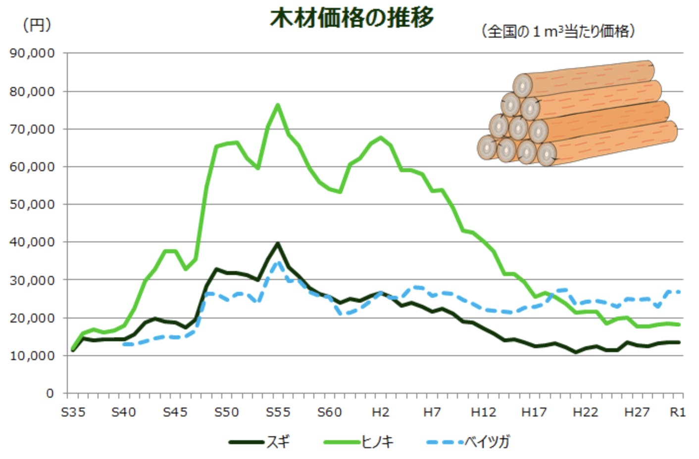 ピーク時の40年ほど前とは木材価格が8万円に迫ろうとしていました。