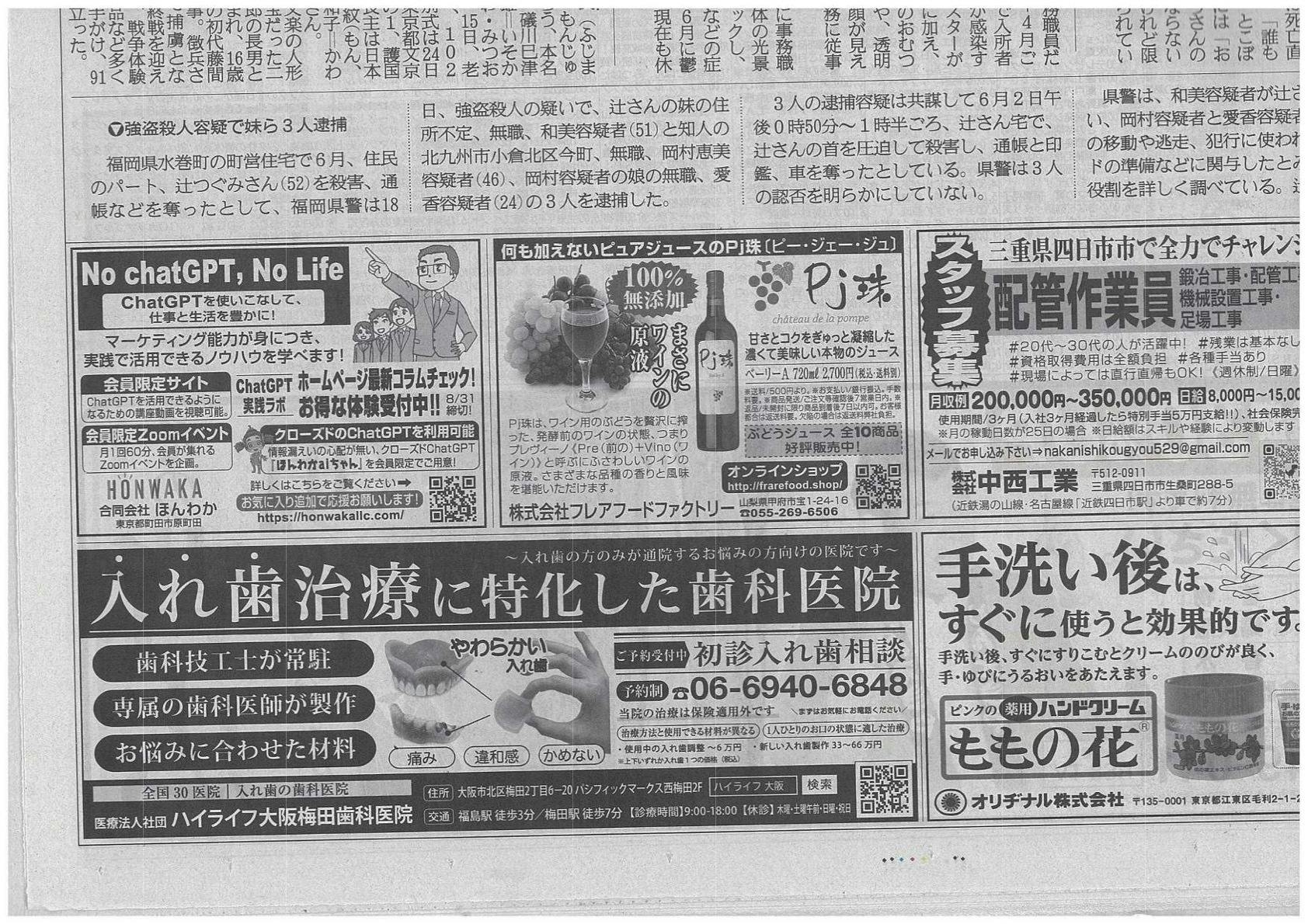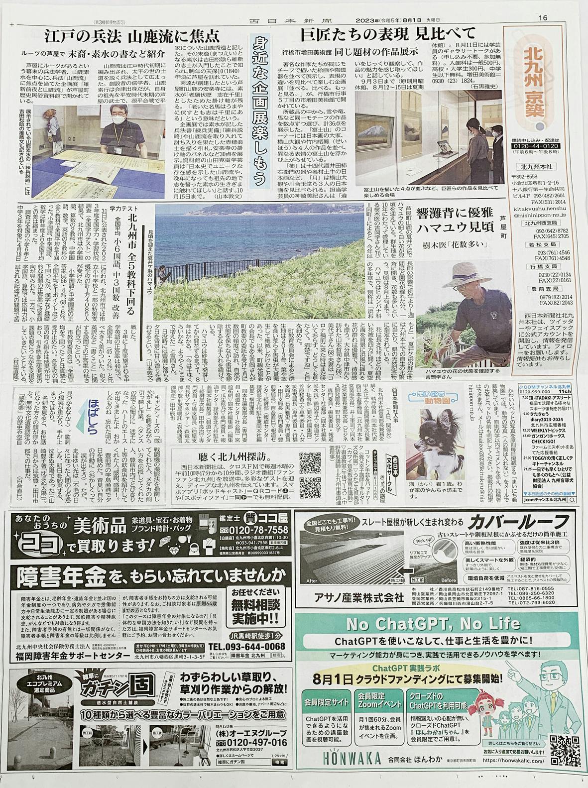 2023/08/08 09:00西日本新聞にも掲載されました!募集は8/31で締め切りです。個人スポンサーの方は3,000円でサービスページにURL、会社名を記載させて頂きます。ご支援を頂いた方は早速ChatGPT実践ラボサービスページにスポンサー名記入させて頂きました。是非そちらご支援頂いたあとは個別メッセンジャーで会社名、URL頂くと前倒しでPRさせて頂きますのでご一報ください。ChatGPT実践ラボサービスページ(10/1 - スタート)https://chatgptschool.info/ もっと見る