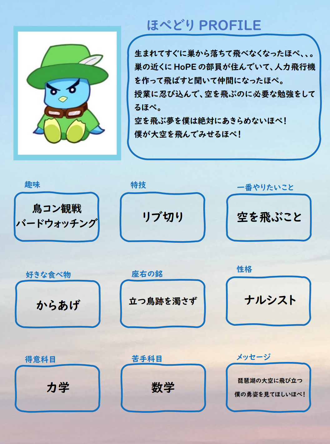 HoPEのマスコットキャラクターである「ほぺどり」です。