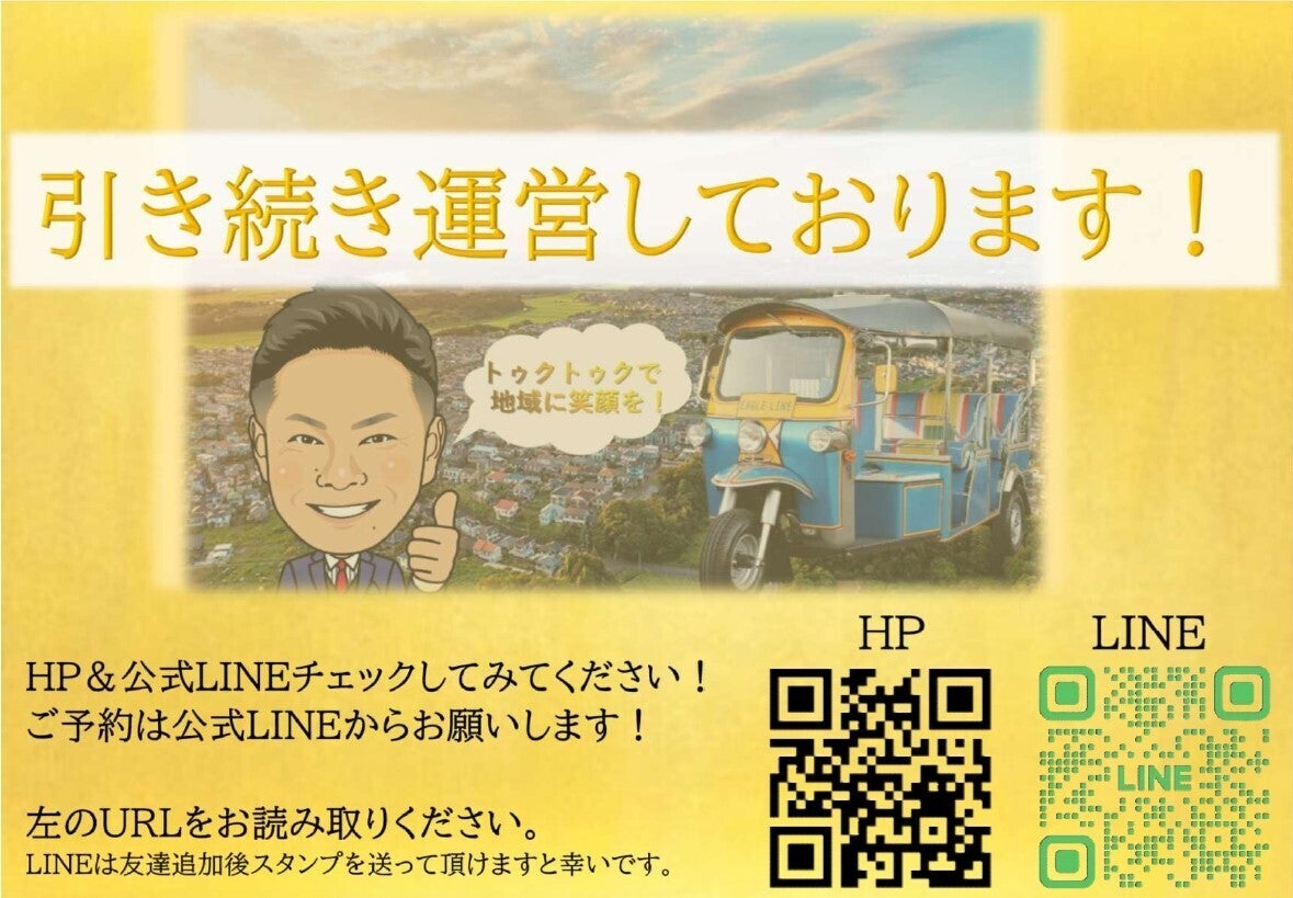 2024/03/01 12:05いつも大変お世話になっております。3月に入り、徐々に春が見えてきており、暖かくなってきました。春先のドライブ・イベント・お花見に是非、龍トゥクをレンタルしてみてはいかがでしょうか。貴重な経験を是非トゥクトゥクを活用してお楽しみください。ご予約は公式LINEから受け付けておりますので、画像のQRコードをお読み取りいただき、リッチメニュー欄からお手続きください。また、友達追加後はスタンプを送って頂けますと幸いです。併せて、龍トゥクトゥクJAPANレンタカーHPが公開されておりますのでご確認ください。https://ryutukjapan.studio.site/予約ページは下記URLからお願いします。https://lin.ee/3w0AyFS引き続き、龍トゥクトゥクJAPANレンタカーを、どうぞ宜しくお願い申し上げます。 もっと見る