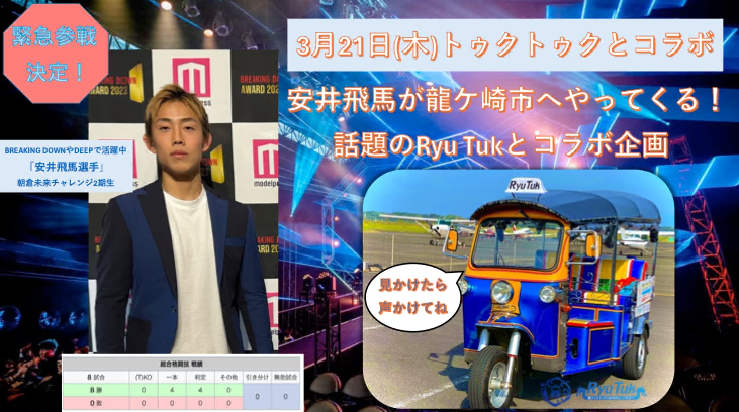 【緊急決定】3月21日(木)Ryu Tukと安井飛馬選手がコラボ!