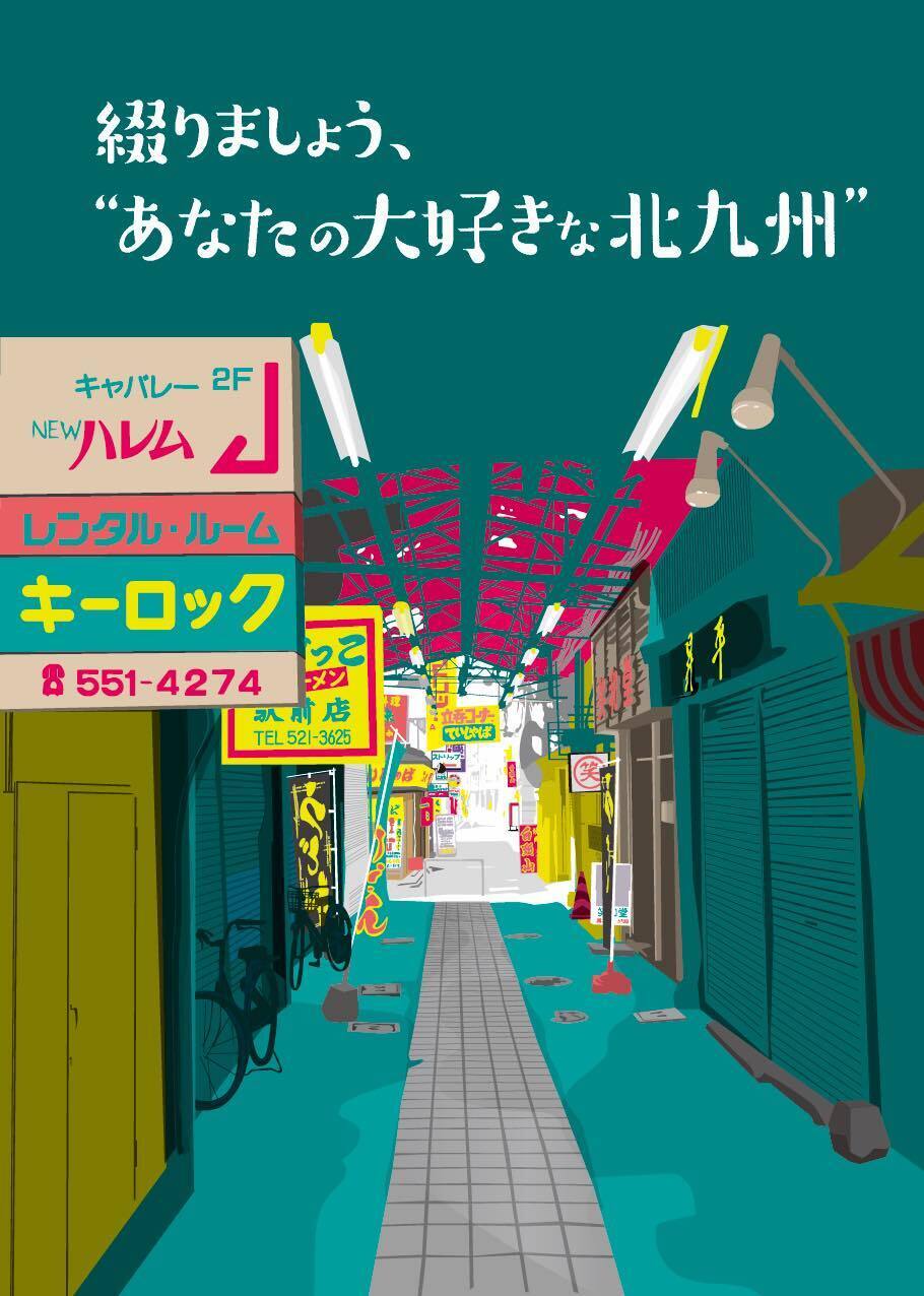 前回に続き、表紙のデザインを北九州市で活躍するグラフィックデザイナー・岡崎友則さんにお願いしました。かつての小倉駅南口の飲食店街の様子をデザインしています。本エッセイ集のための描き下ろしです。