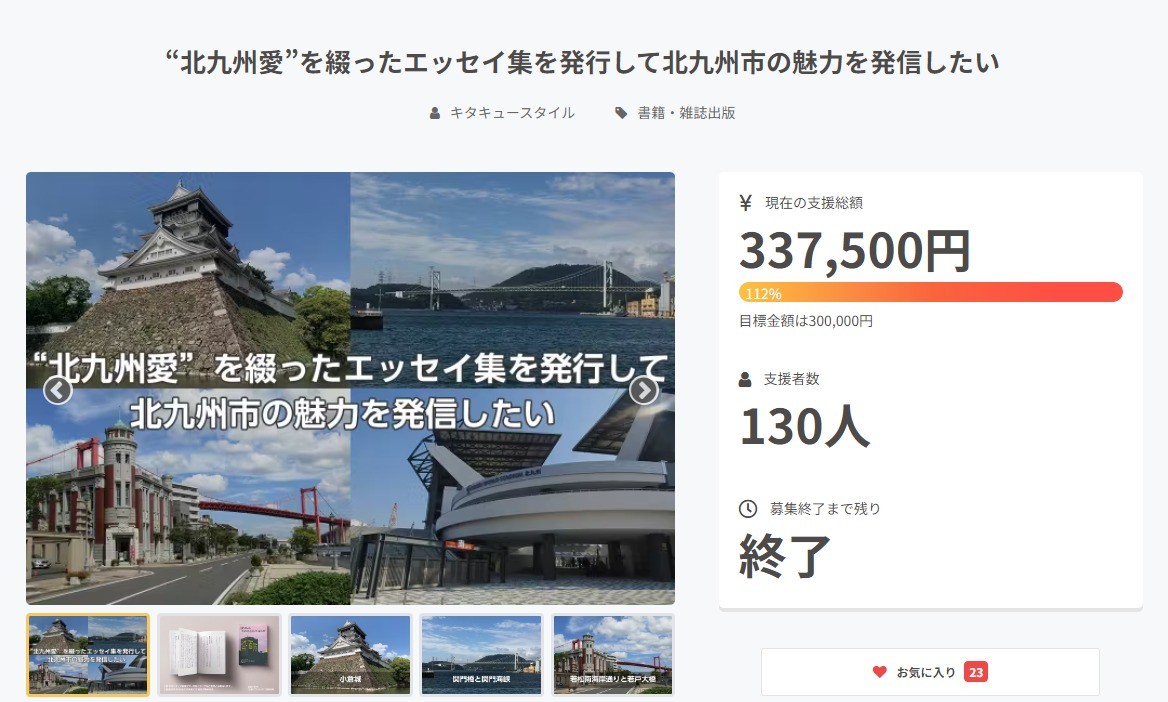 “北九州愛”あふれるエッセイを一人でも多くの方に読んでいただけるよう、ご支援のほどお願いいたします。