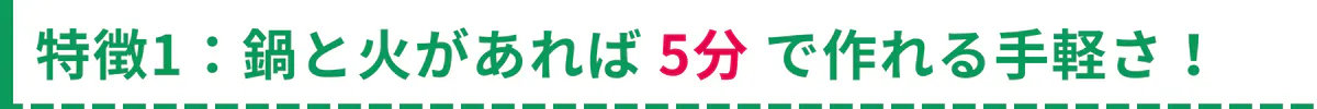 どんな環境でも「鍋と火さえあれば5分ほどで調理できる」のが大きな特徴です。