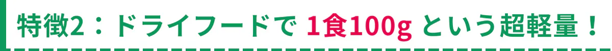 ② ドライフードで1食100gという超軽量!