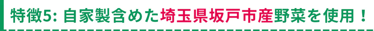 ⑤ 自家製含めた埼玉県坂戸市産野菜を使用!