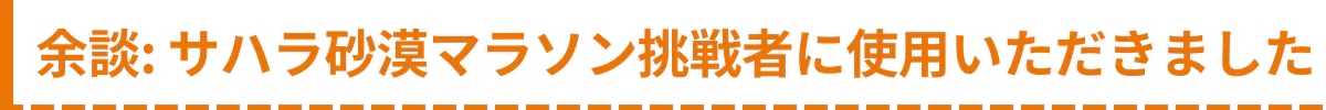 本格的な商品化に先立ち、2023年4月には【 サハラ砂漠マラソン 】に挑戦した日本人選手に私のトレイルフードを使用していただきました。