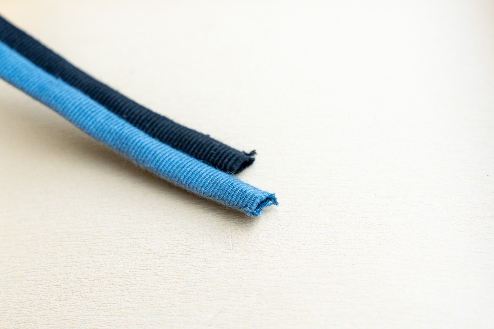 袋紐には端がなく、円筒状に編まれています。この構造によって、指あたりが優しくなり、フワッとした心地よい感触を表現しています。
