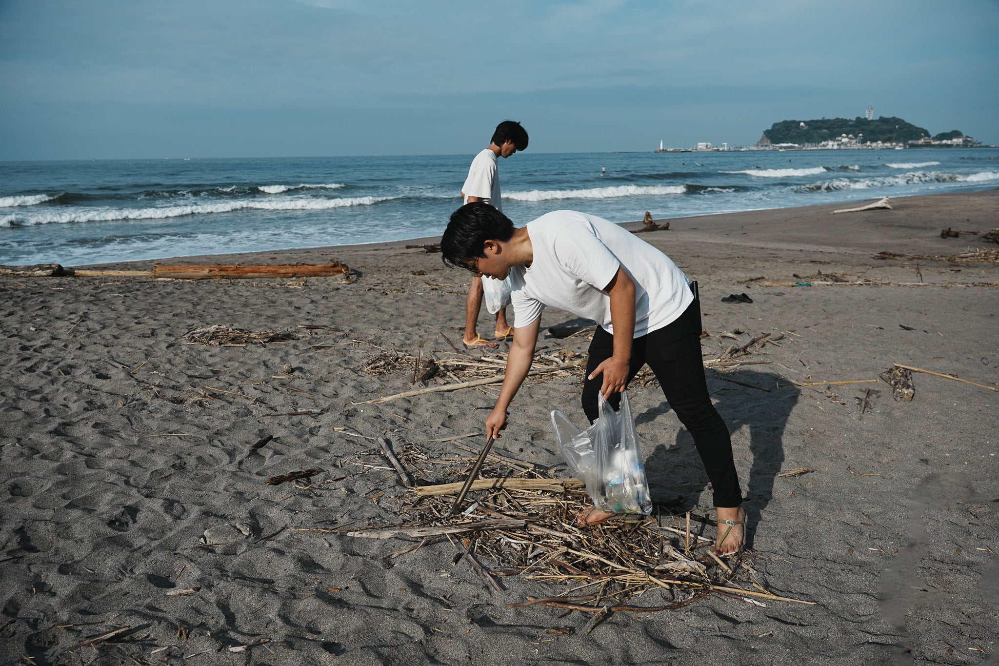 私自身は波乗りや散歩で海に行く機会がとても多く、毎回海岸で見かけるプラスチックごみの膨大な量に圧倒され、このごみをなんとかできないかという思いをずっと抱えてました。そこで、海仲間であり、モノづくりのプロであるバガボンワークス(※1)の宇都宮一馬と共に、海洋プラスチックごみからサンダル「OKEANOS|オケアノース」(以下、「OKEANOS」)を開発することになりました。