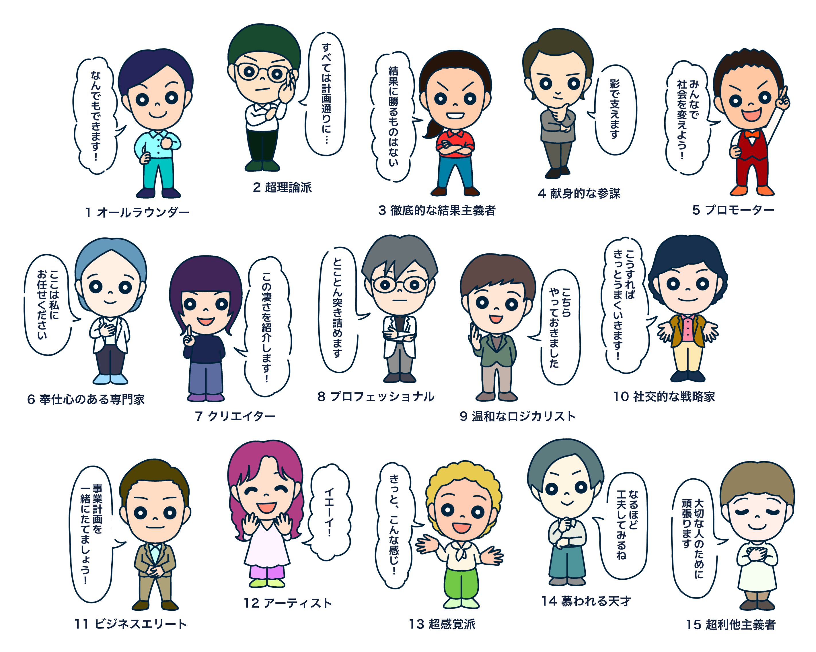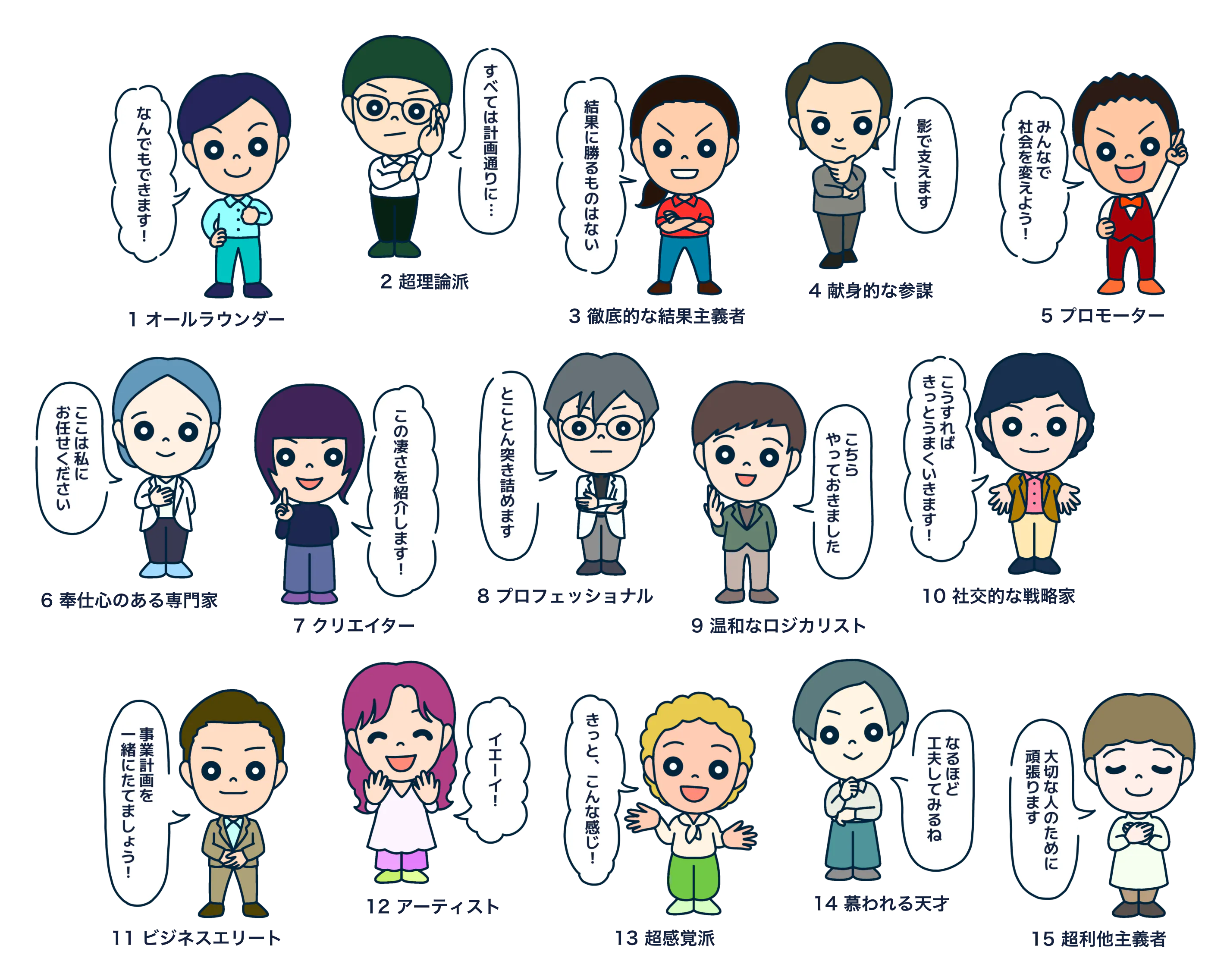 🔷脳使用傾向性の数値を、15のキャラクターで分かりやすく解説します。
