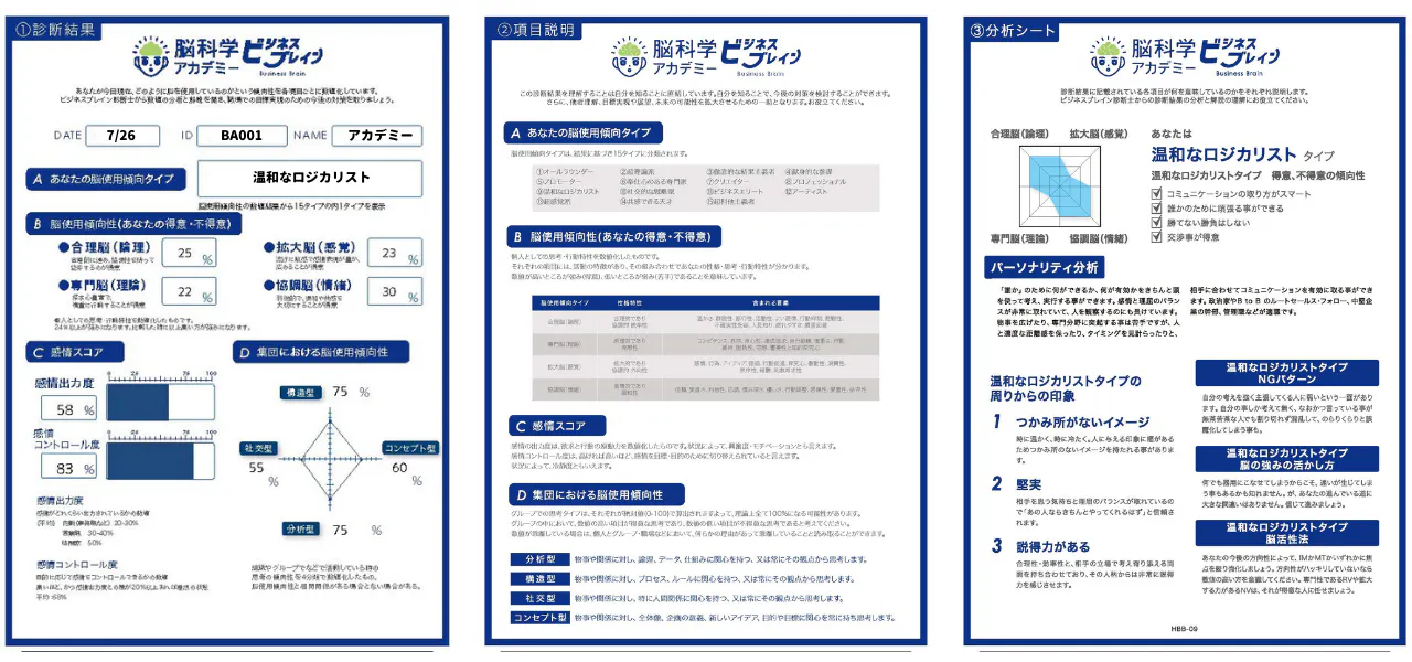 一般社団法人ブレインアナリスト協会と現役の脳科学者が開発した、脳傾向性診断を採用。