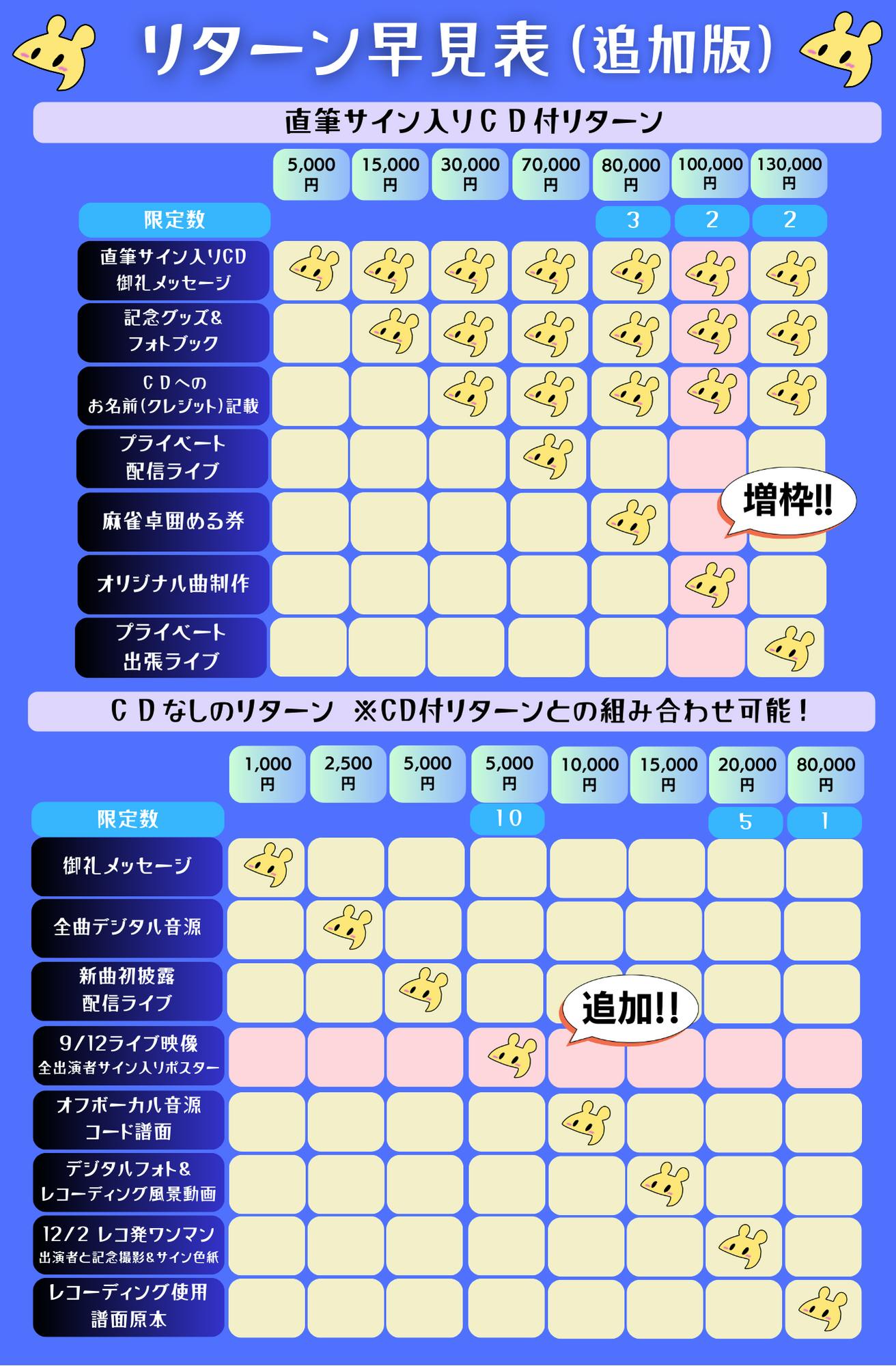 ・リターン制作費、送料、梱包代、その他経費‥50,000円