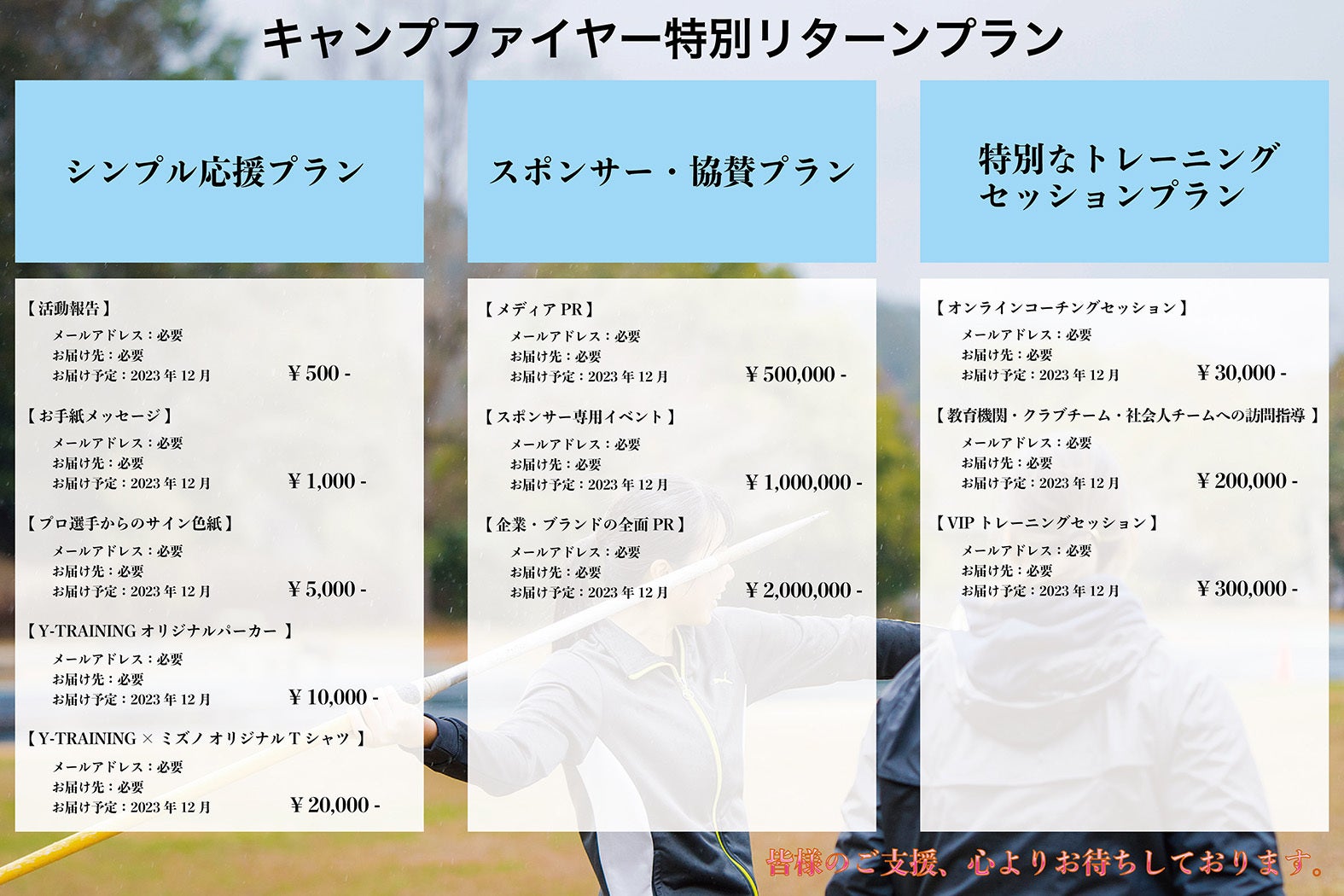 皆様の温かいご支援をお待ちしております。
