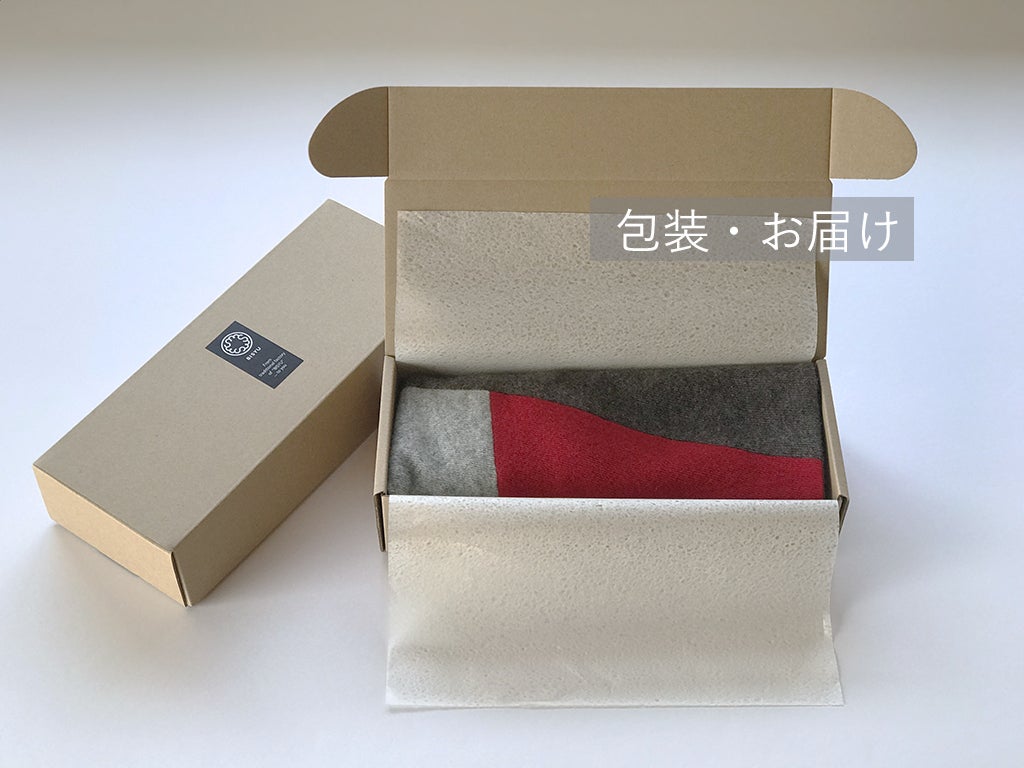 原料 糸 ー Yarn raw material:中国内蒙古自治区(China)ーカシミヤ原毛は中国内蒙古自治区のある特定の地域のみに限定して手配しています。カシミヤ原料の品質は、カシミヤ山羊の品種と生息産地により大きく異なるといえます。冬期の気温は厳寒マイナス30~40℃夏期は30℃以上と寒暖差がとても激しく、非常に厳しい気候条件の下で飼育されています。厳しい条件であればあるほどそこで採毛される毛質は、うぶ毛繊維が細く、長く、白く、ぬめり感のある最良質原原料であり、生息する産地の特定は最も重要な要素です。日本に運ばれた原毛は、カシミヤの老舗東洋紡糸工業さんで染色から紡績まで日本で一貫して仕上げられています。