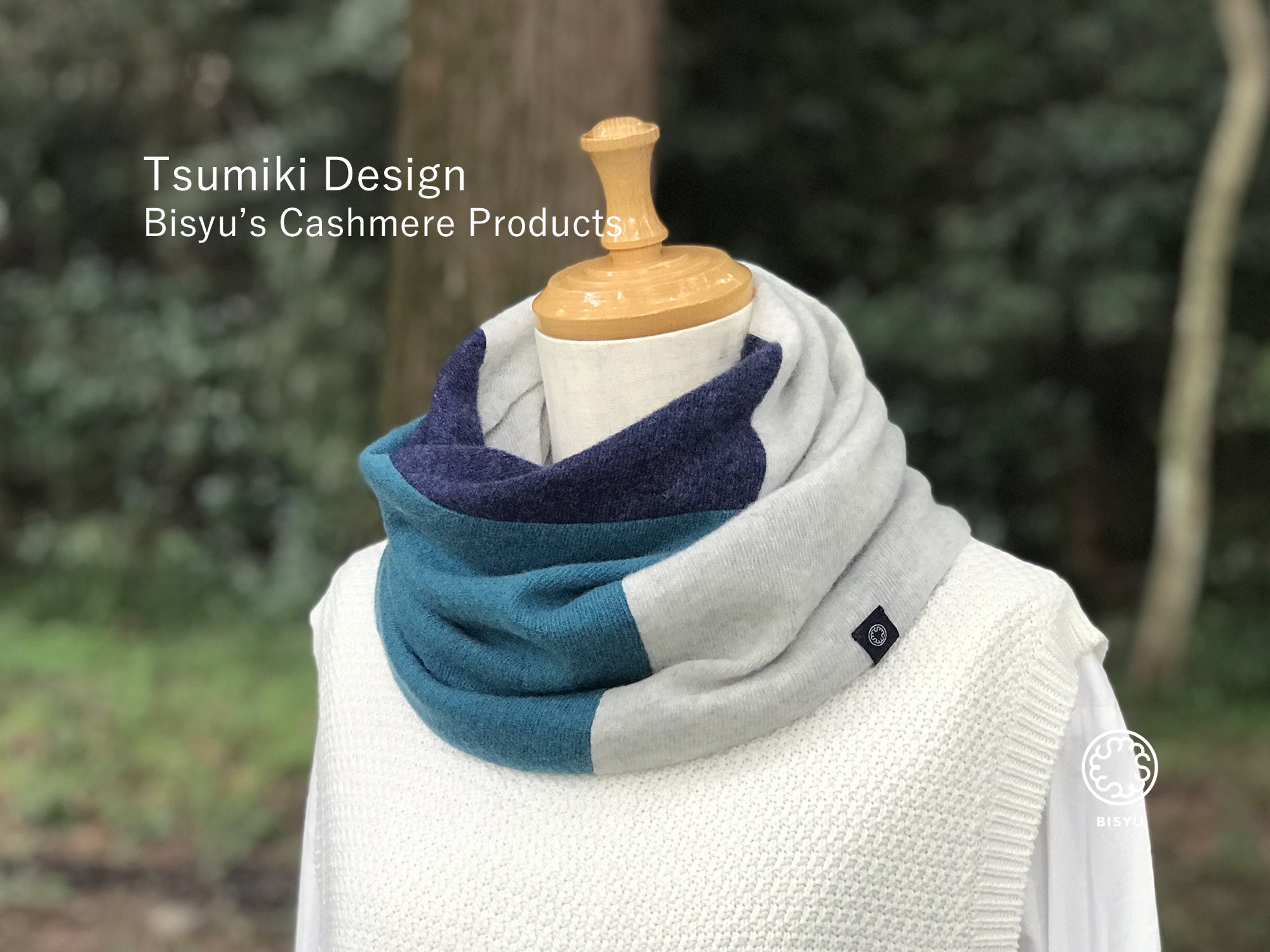 Bisyu's純カシミヤねじりスヌードは、抜群の肌触り絶妙と膨らみを持つ薄手カシミヤ素材をねじりながら二重構造にすることで空気層を内側に包み込み、すっぽり着用するだけで自然にねじれた表情となる様、設計・デザインされています。ふんわりふっくら優しい肌触りで保温性は抜群、超軽量のなのでつけているのを忘れてしまいそう・・・新しく[Tsumiki Design]も仲間入りしました。