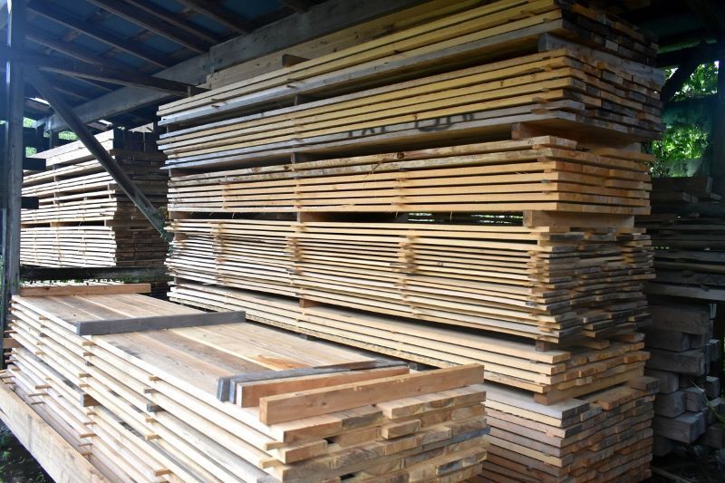 これを乾燥させて水分を抜いていくのですが、その方法として化石燃料や電気を使う人工乾燥ではなく、より自然に優しい天然乾燥により行っております。