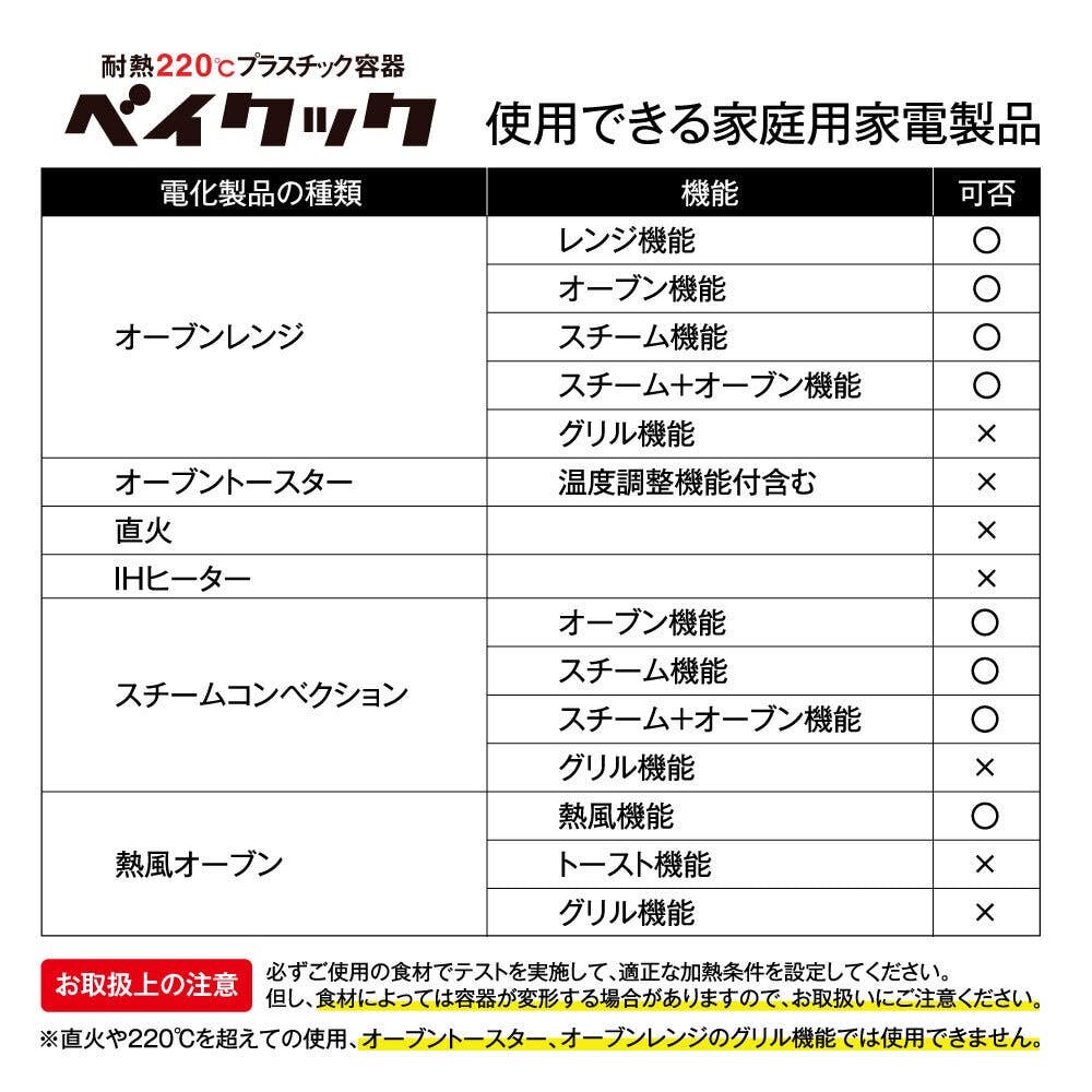 BAKEQ 120角350CCは、ベイクックシリーズの中でも唯一の正方形タイプの容器です。ケーキやアップルパイなどの洋菓子や、シチューハンバーグなどに最適と多くのお客様から評価をいただいております。オーブン・スチームコンベクションなどの調理機器で使用することができ、最大220℃まで対応可能な高耐熱C-PET容器です。