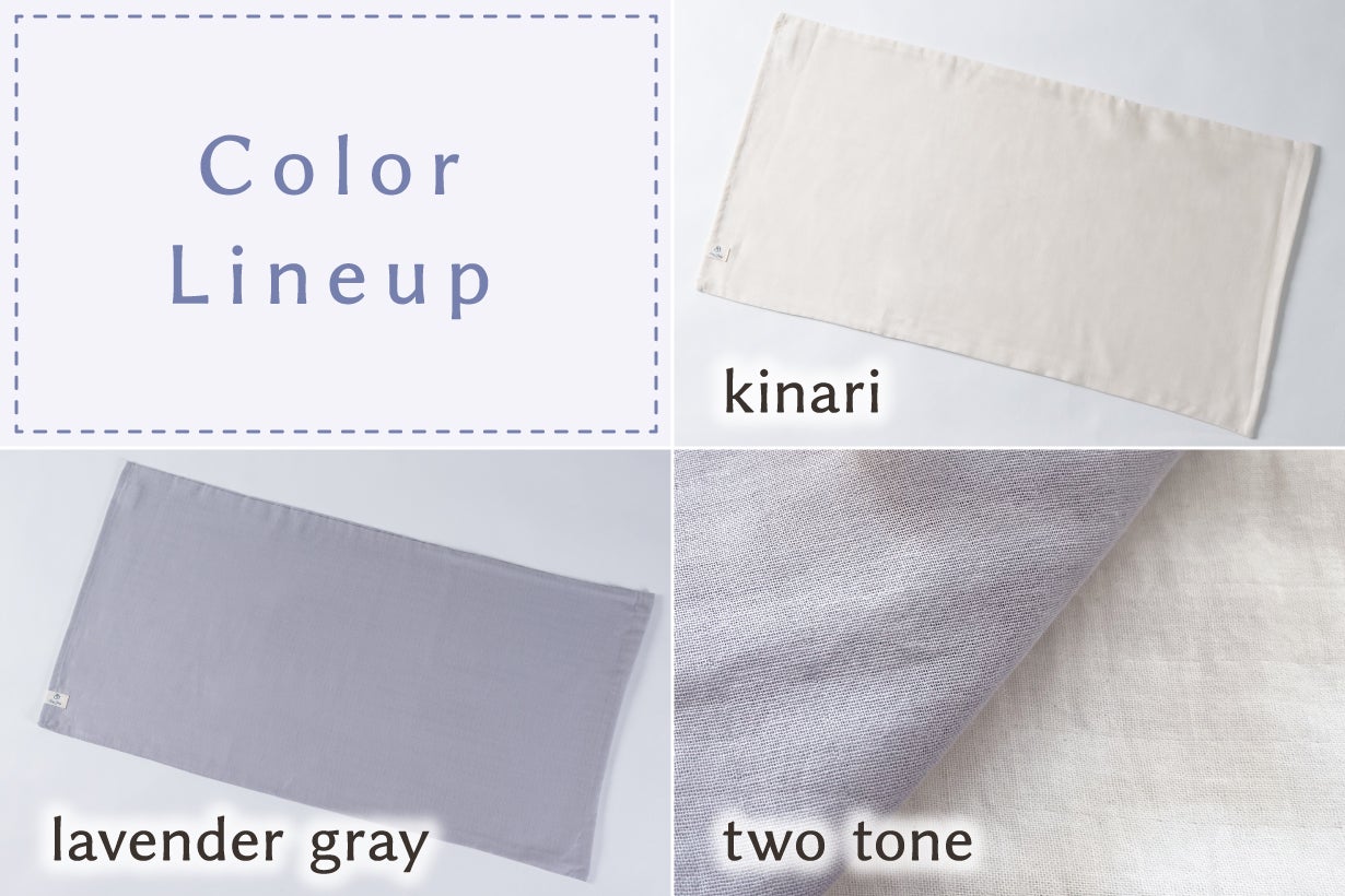 そして、定番の生成り色に加え、使いやすく落ち着きのある色合いのラベンダーグレーが新色として加わりました。