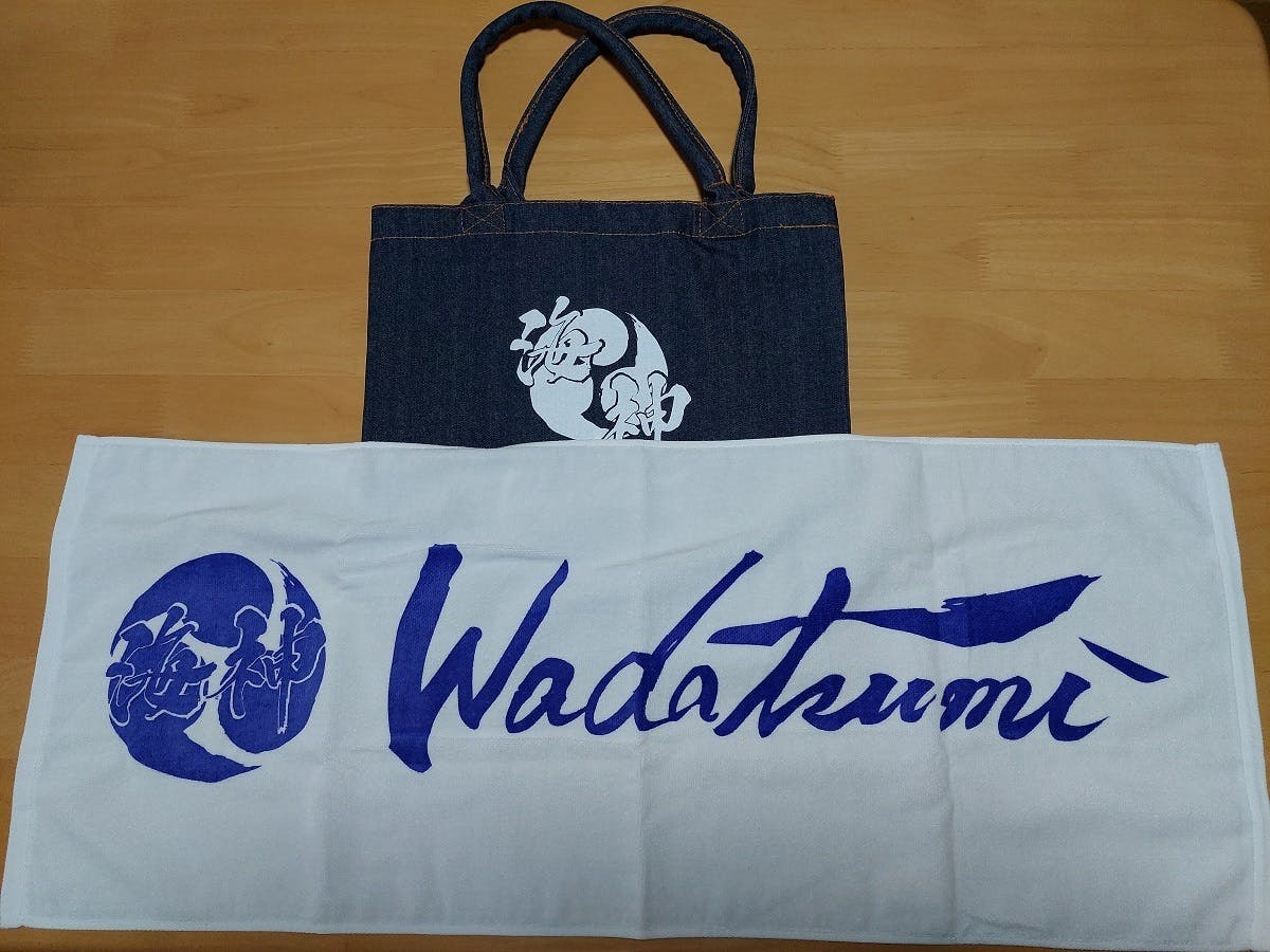海神のロゴ入りタオルです。支援コースにより枚数が変わります。