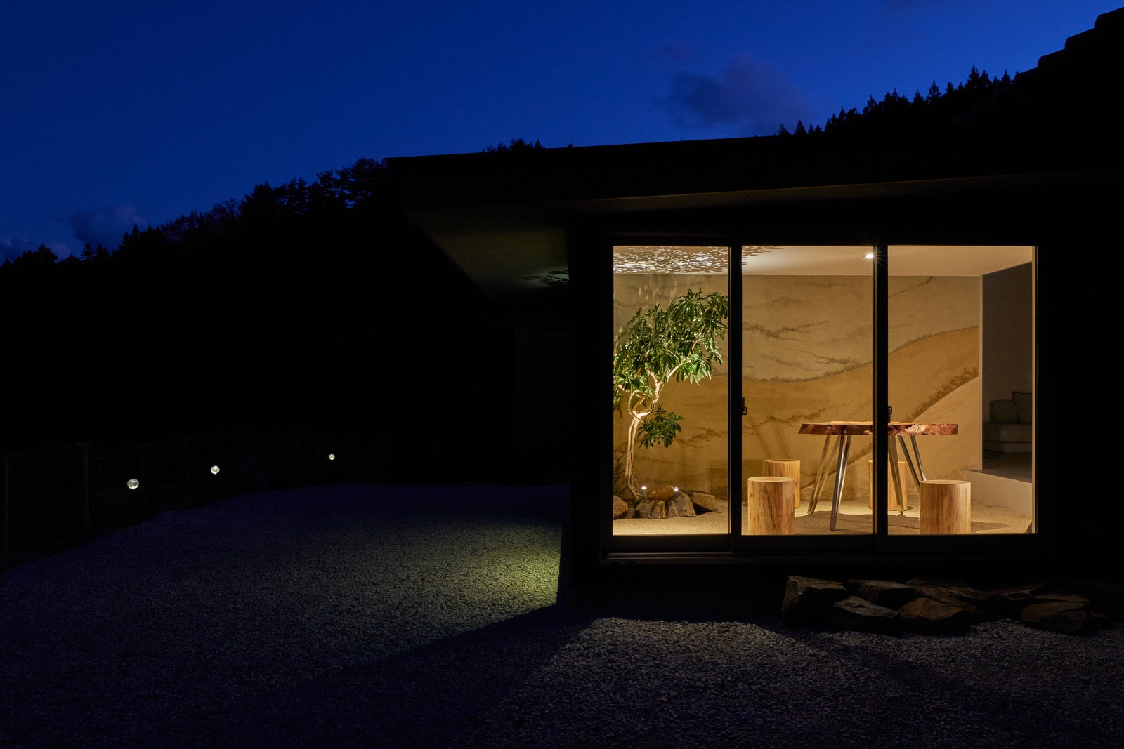 2023/11/22 12:32こんにちは!このプロジェクトも明日がとうとう最終日となりました。ここまでご支援いただきありがとうございました。今日は当施設の進捗状況をお伝え出来ればと思います。現場のリアルを見ていただければと思います。まず、母屋と離れはほぼ完成しております!建物外観施設名の入った暖簾が未設置でお見せできないのが残念です!母屋の真後ろは世界遺産「荒船風穴」です。世界遺産に見守られながらのリトリート宿泊、控えめに言っても最幸です。夕方から夜にかけての雰囲気がとても神秘的です。ちなみに暖簾のデザインはこんな感じです!施設ロゴ入りです。3枚の自由曲線が折り重なる様子は施設コンセプトからくるものです。(実はこの曲線の暖簾を作れる業者さんを探すのが大変でした。10社以上問い合わせしてくれたデザイナーさんに感謝です。)集落のありのままの原風景を見下ろすひらき箱<土間スペース>室内に土間、無垢材テーブル、丸太輪切りスツール、植栽が映し出す影。夜に浮き立つ窓からの借景は一見の価値ありです。離心庵<瞑想スペース>こもり箱<寝室>茶飯事<リビング>※ちょっと片付いて無く、、、全体が分かる写真をアップできませんでした汗無心庵<小屋サウナ>こちらはまさに工事中です!SNSでは随時進捗の発信してますので興味有る方は御覧ください。後ろには世界遺産、サウナを出れば湧水かけ流しの水風呂、ありのままの原風景での外気浴。控えめに言って最幸じゃないですか!?!?是非、現地で体験してみてください!!! もっと見る