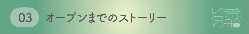 ここからは、開業までの経緯、どういう想いで進めてきたか、などをお話できればと思います。