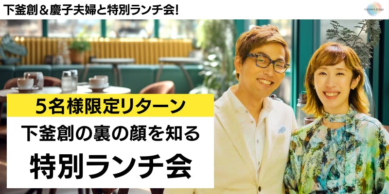 6年間の活動を支えてくれた最愛の妻・下釜慶子と、私・下釜創が同席し裏側の話を聞きながらランチをする会。