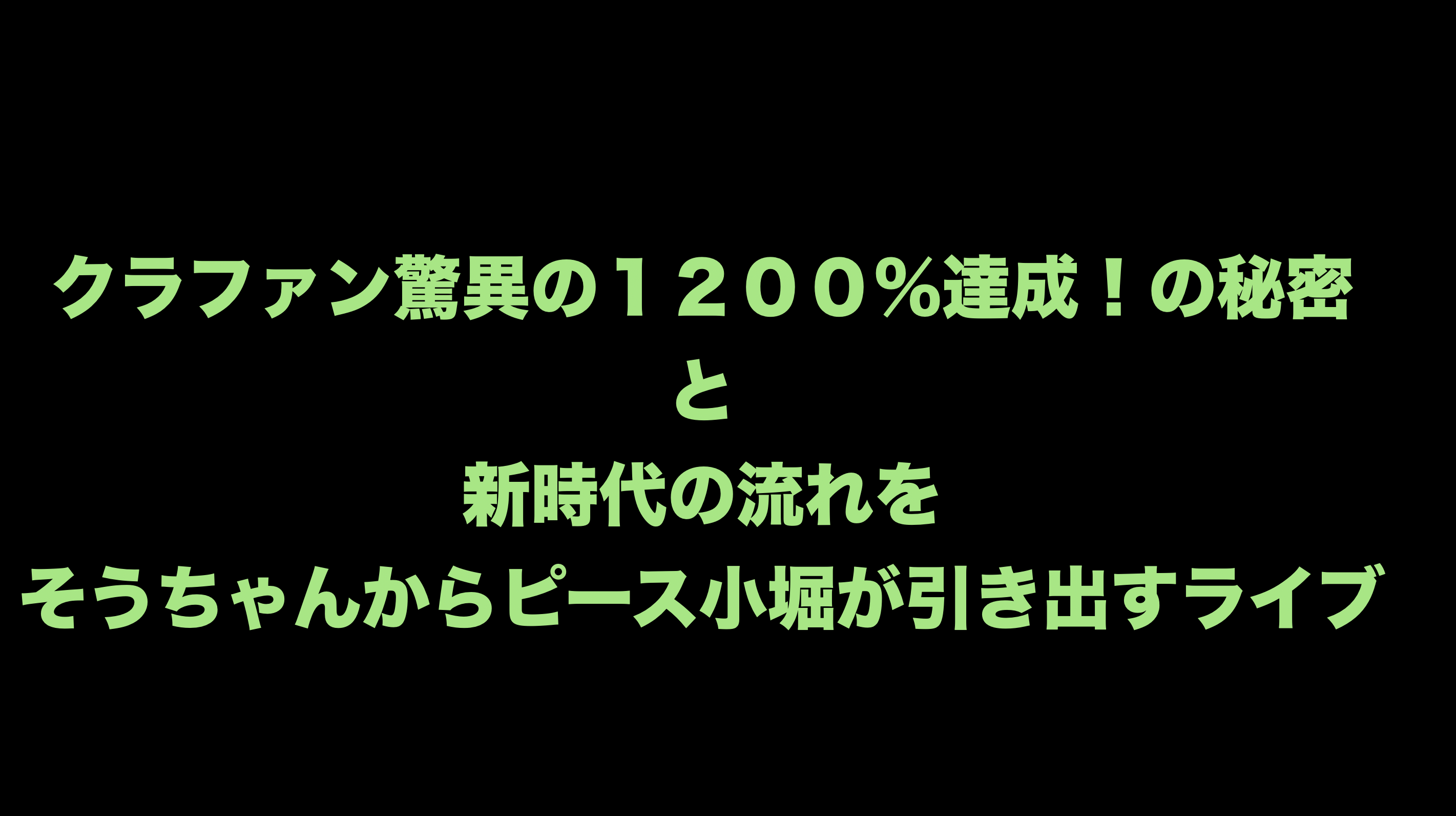クラファン 脅威の1200%達成の 秘密と新時代の世界について そうちゃんをピース小堀さんが 引き出すライブ!