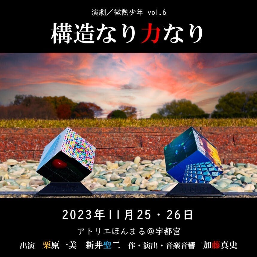 2023/09/10 17:14クラウドファンディング終了後、個別に上演や上映のお問い合わせをいただき、その中から栃木県宇都宮市の劇場アトリエほんまるさんでの『構造なり力なり』の上演と『すべて重力のせいだ』の特別上映会が決まりました。皆さんのご支援のおかげで、より多くの方たちに作品を届けることが出来そうです。『構造なり力なり』は加藤真史作品の常連ともいえる栗原一美・新井聖二の二人を迎え、新演出でお届けします。公演のご予約はPeatix特設サイトにて 24日9時からご予約可能です!(特別上映は既に予約可能です)DVDも鋭意制作中です。お届けまで今しばらくお待ちください。 もっと見るクラウドファンディング終了のご報告