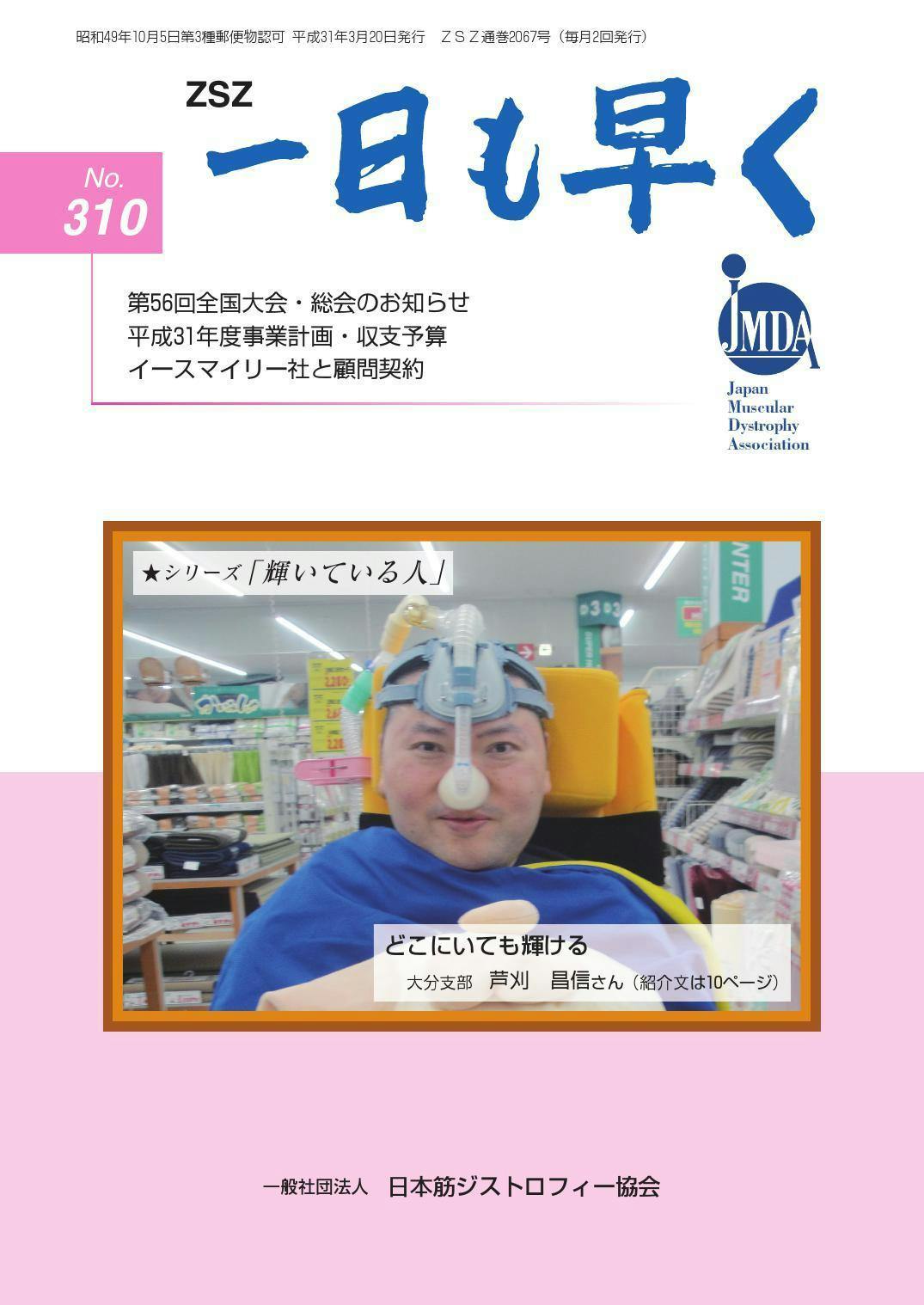 日本筋ジストロフィー協会の広報誌の表紙に掲載されました