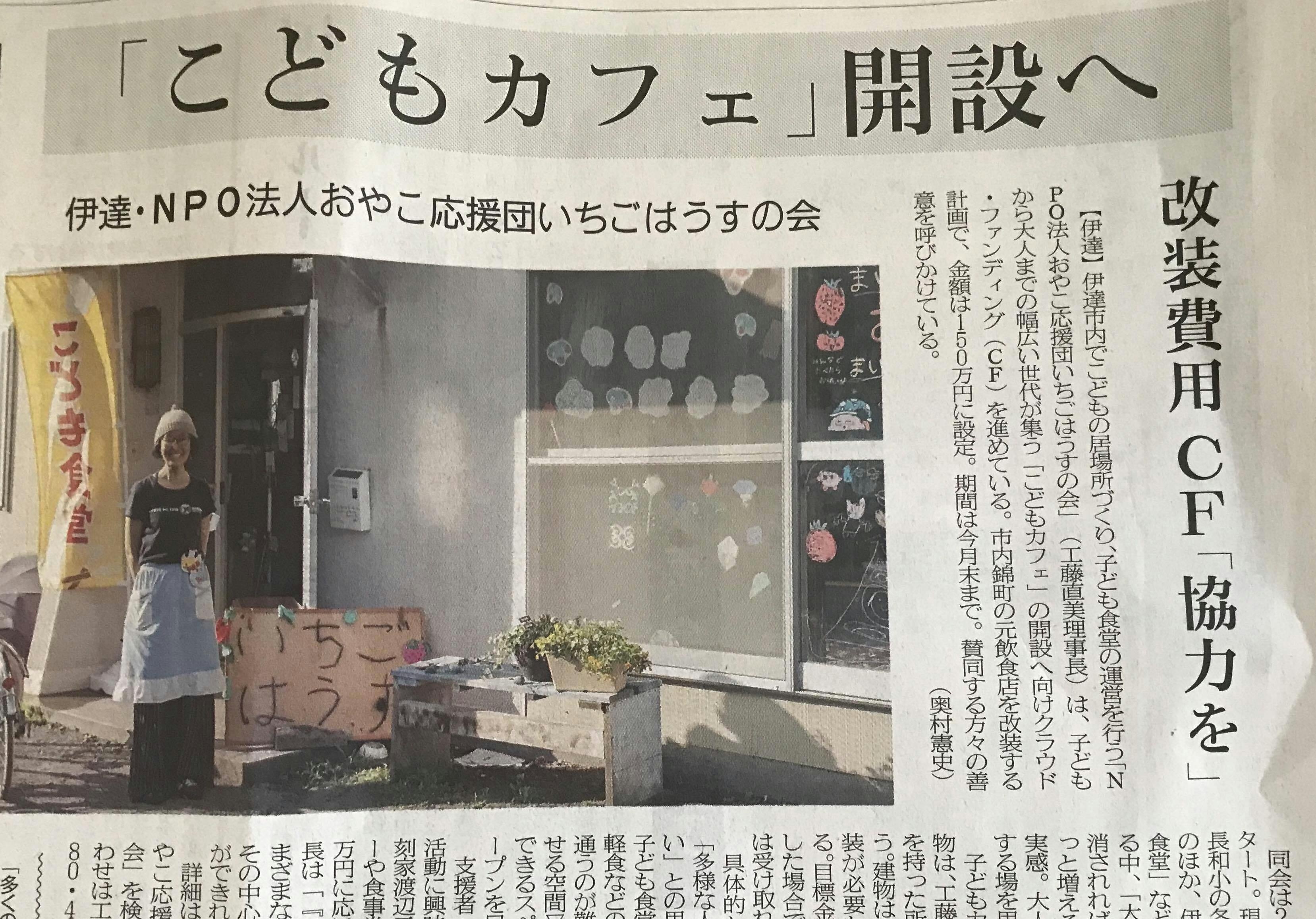2023/09/27 15:59いちごはうすのクラウドファンディングをご覧いただき、ありがとうございます。また、すでにご支援くださった皆様、誠にありがとうございます!【現在の支援状況】9/27現在、1,308,000円ものご支援をいただいております。目標額1,500,000円まで、あと少しとなりました!また、クラウドファンディング以外でも直接のご寄付をいただいております!---トップ画像・タイトルにもある通り、9/27の室蘭民報さんに掲載していただきました!クラウドファンディングの残り期間は短いですが、ご支援いただけますと幸いです。また、クラウドファンディング終了後も、イベント等でこどもカフェの準備を皆さんと一緒に進めていければと思っています。引き続き、ご協力のほどよろしくお願いいたします! もっと見る