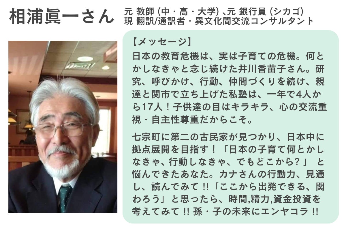こうした「一定の価値観を共有した大人が、子どもたちを地域やコミュニティ全体で育てる」概念を、私はPCA(PARENT COMMUNITY ASSOCIATION)と定義しました。そして、この概念を基に、岐阜県七宗町にて、日本の社会システムに囚われない新しい共同体「100万馬力」を創るための社会実験を開始します!