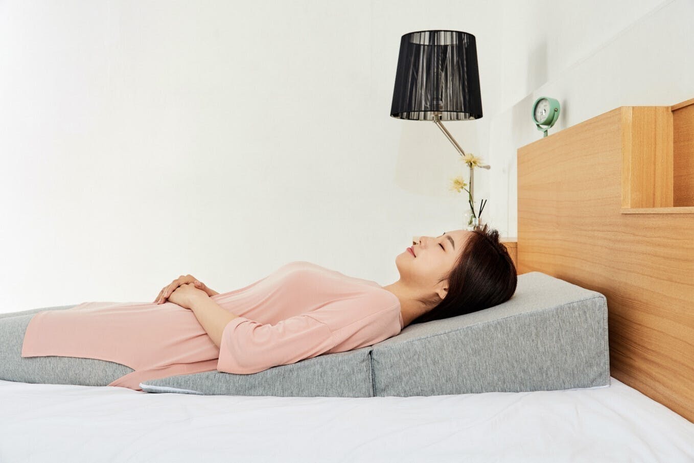 A:本製品は専門家の助言のもと、腰に負担がかからない角度に設計しております。ただし、万が一腰の負担を感じましたら、本製品と腰の間に小さなクッションやタオルを挟むことで、快適に眠ることができます。
