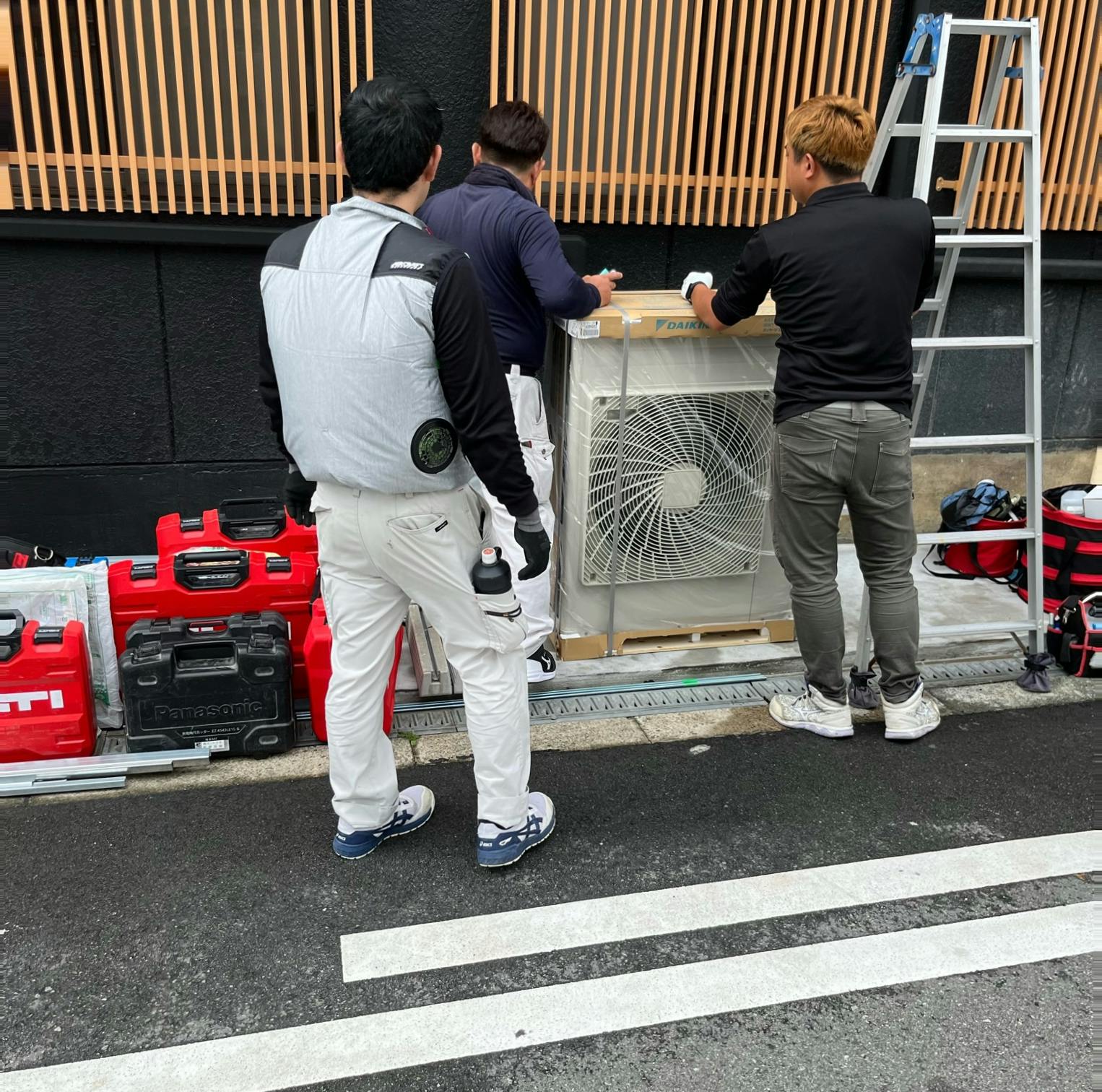 進捗② 解体作業進行中and業務用エアコン設置開始