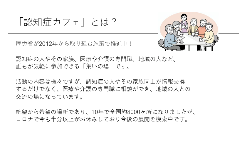 方にほっとカフェを紹介をしたりして連携してきました。コロナ禍で、認知症の進行が進む中で各地域にこの認知症カフェが