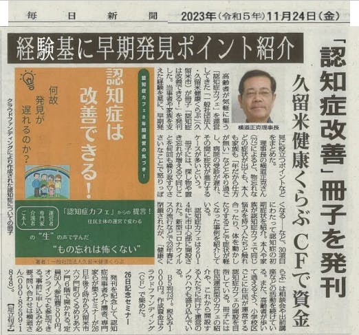 2023/11/24 16:03おかげさまで、毎日新聞さんに記事を掲載していただきました!大きく取り上げていただき感謝です!認知症当事者の声を聴こう!セミナー日時:11月26日(日)14時~16時会場:くるめりあ六ツ門6階 みんくる参加費:500円オンライン(Zoom)でも視聴できます!※事前にご連絡をお願いします もっと見る