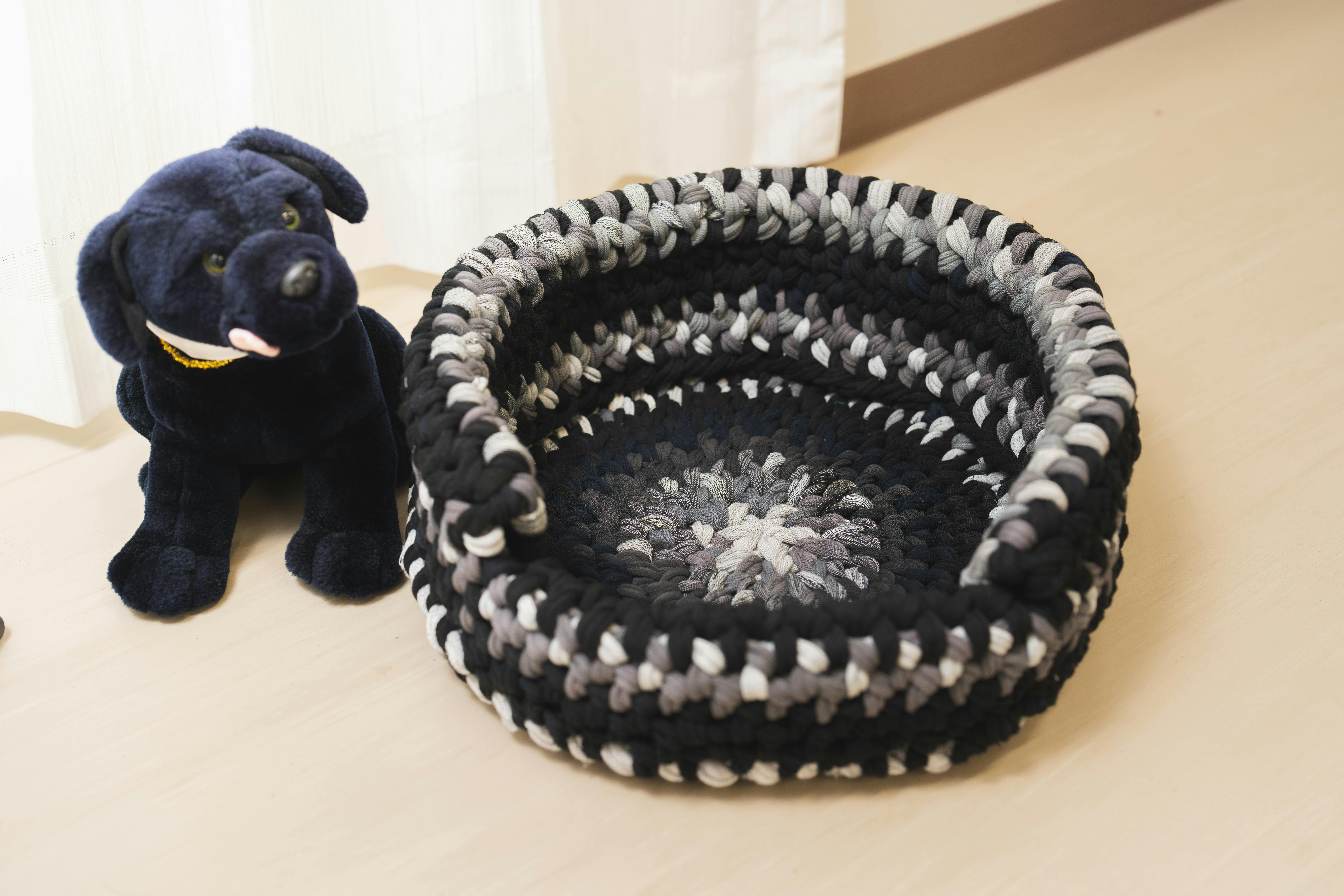 この「ペットベット」は「靴下のハギレ」から作られています。