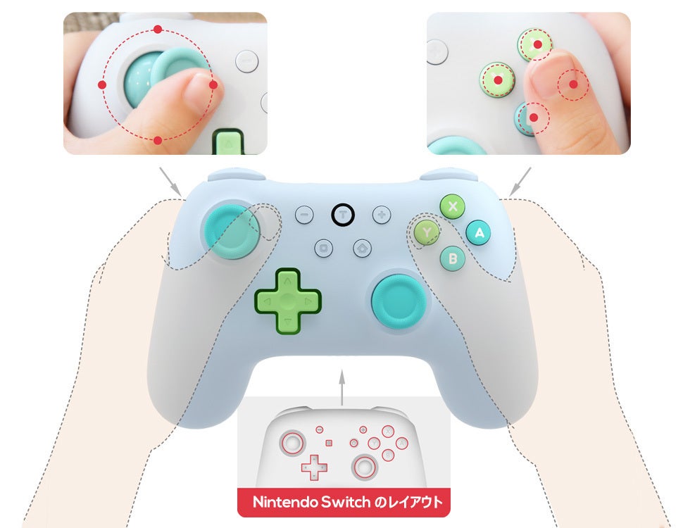 今回、DIGIFORCEが発信する「moco 2 kids Controller」は、Nintendo Switch専用のプロコントローラーです。小さな手のお子様が使いやすいよう小学生(6歳から12歳)のお子様の手のひらサイズに合わせ、可愛いフォルムやお洒落なカラーバリエーションにもこだわってデザインしています。ただ小さいだけでなく、操作性や機能性にも追求し、本格的で使いやすく、可愛らしさと実用性を兼ねそなえたコントローラーとなっております。