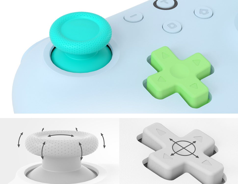 左右のアナログスティックや十字ボタンには滑り止め加工。