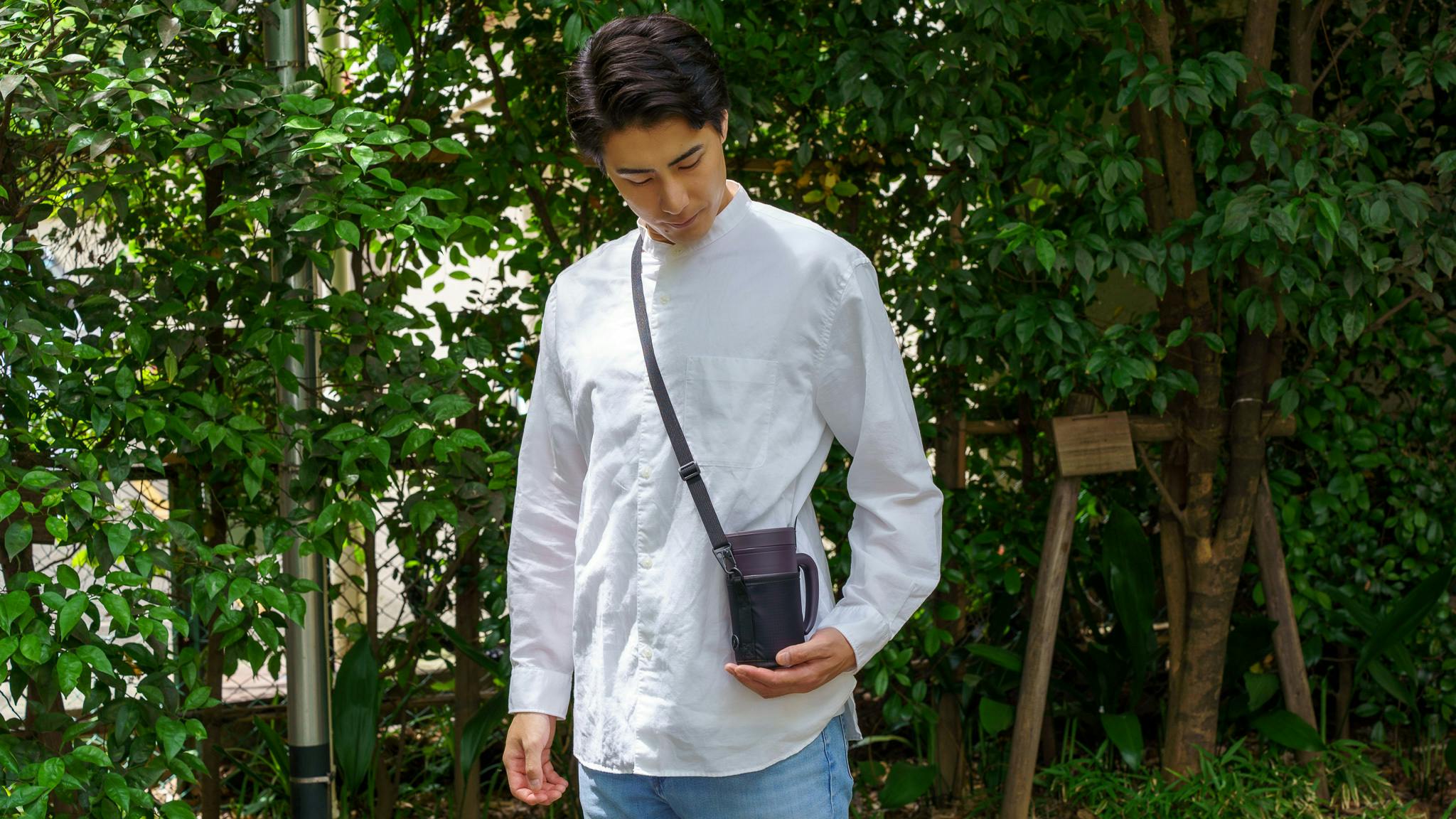 茶こしとハンドル付きタンブラー、専用スリングカバーをセットにし、お茶を淹れる/注ぐ/持ち運ぶの機能を一体化しました。