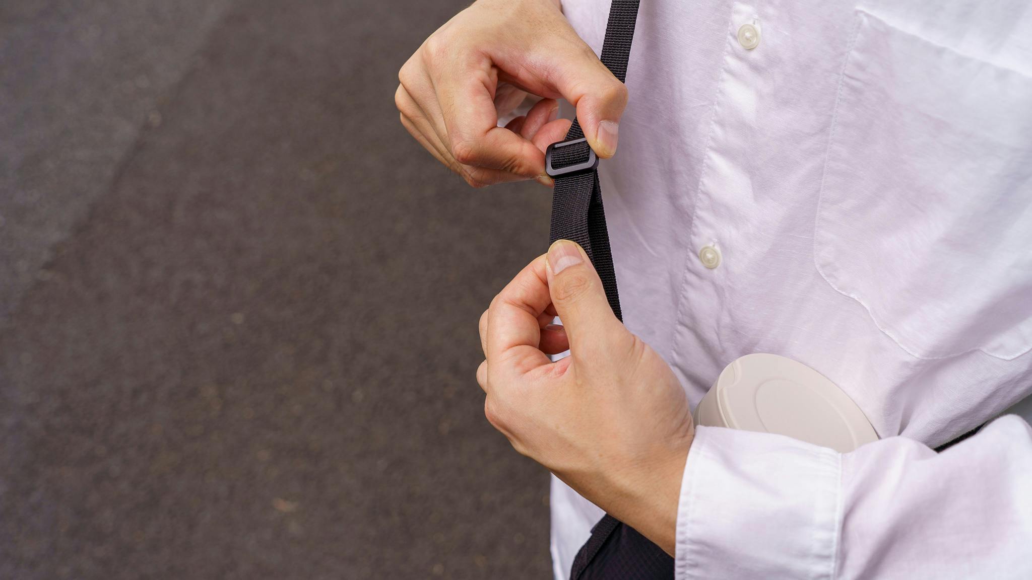 ショルダーストラップの長さは、全長63~120cmまで調整可能。身長や体型、服装などに合わせて、ある程度自由に変更可能です。